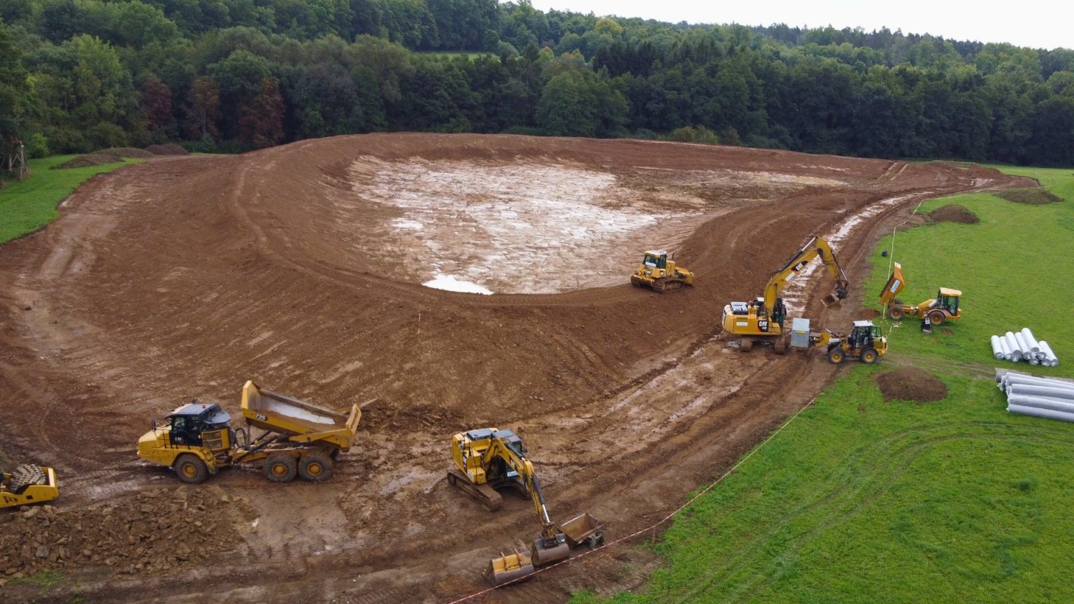 Ziel: Auf der Golfanlage Schönbuch hat im August 2025 der Bau eines neuen Wasserspeicherteichs begonnen. Mit einem zusätzlichen Speichervolumen von ca. 30.000 m³ wird die nachhaltige Bewässerung der Anlage langfristig gesichert. Die Fertigstellung ist bis Ende des Jahres vorgesehen.
